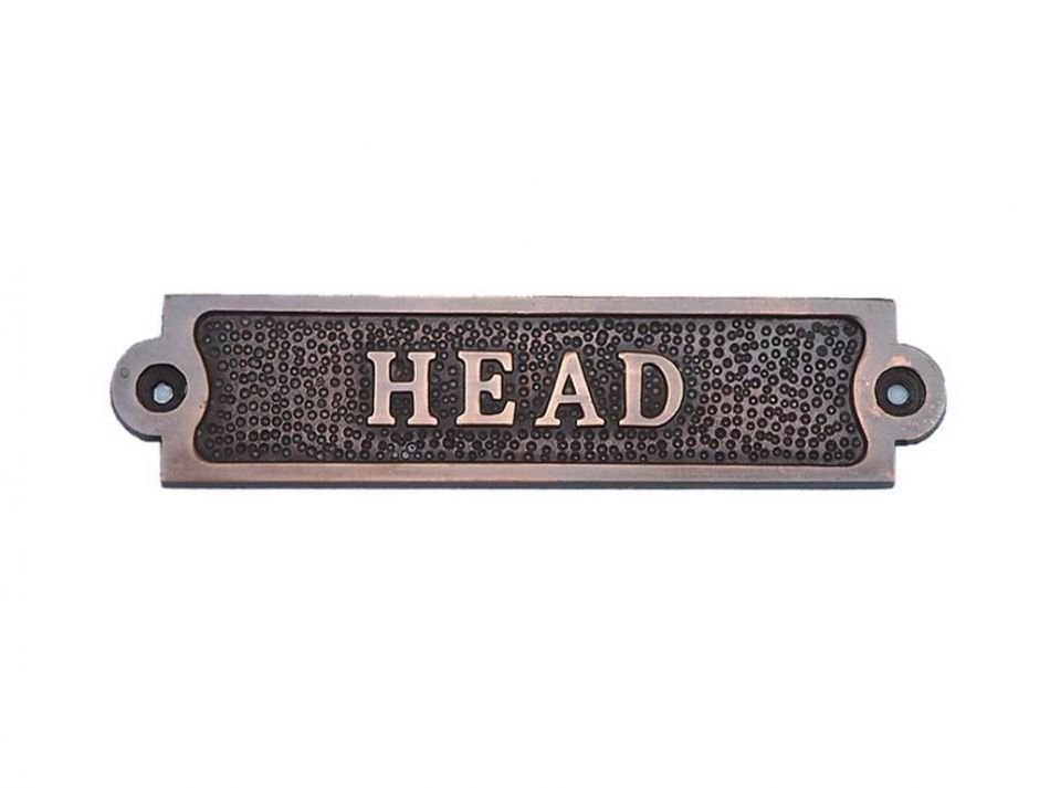Ideal for posting in a boat, boathouse, or any room in the home or office, this antique copper head Sign 6" clearly lets everyone know where their favorite room, with stylish antique copper framing, this shining sign has a classy nautical appeal, with bold and clear lettering on a antique copper face.