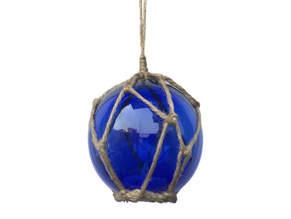 LED Lighted Dark Blue Japanese Glass Ball Fishing Float with Brown Netting Decoration 3"" LED Lighted Dark Blue Japanese Glass Ball Fishing Float with Brown Netting Decoration 3"" LED Lighted Dark Blue Japanese Glass Ball Fishing Float with Brown Netting Decoration 3""