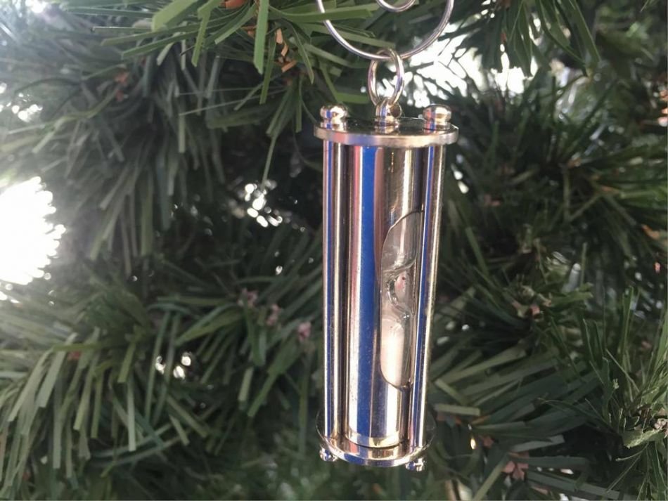 Gather 'round and celebrate the holidays with this Chrome Hour Glass Christmas Tree Ornament 6". Perfectly combining the warmth of the holiday season and the nautical sea-faring lifestyle, this anchor decoration lights up any tree and adds the final nautical touch your Christmas needs. This nautical themed Hour Glass Christmas tree ornament easily hangs and is sure to stand out on this year's Christmas tree.