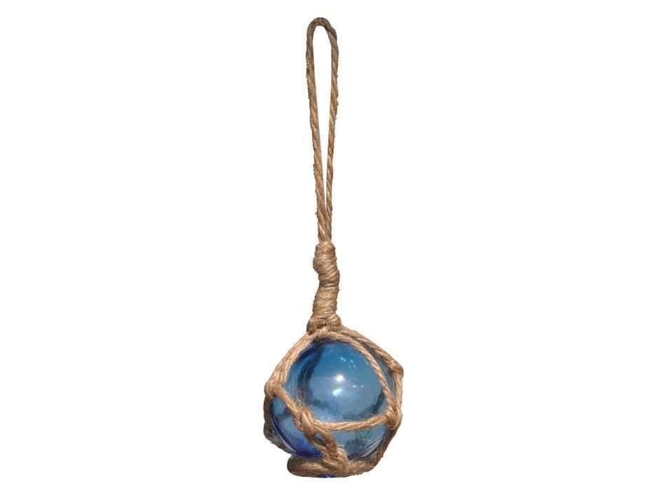 This Light Blue Japanese Glass Ball Fishing Float Decoration Christmas Ornament  2" is a perfect piece of beach wall art. Gorgeous decor on your Christmas tree, enjoy the charming inner warmth of this buoy float as lights play through the glass ball. Perfectly contrasting the glass float is the authentic fishing rope netting which holds the float in place.  This float ornament decoration will light up any tree and adds the final nautical touch your Christmas needs. This charming float ornament can be easily hung onto any Christmas Tree.