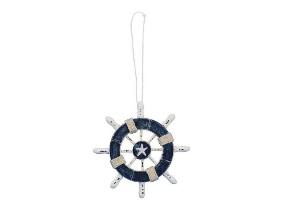 Rustic Dark Blue and White Decorative Ship Wheel With Starfish Christmas Tree Ornament 6"" Rustic Dark Blue and White Decorative Ship Wheel With Starfish Christmas Tree Ornament 6"" Rustic Dark Blue and White Decorative Ship Wheel With Starfish Christmas Tree Ornament 6""