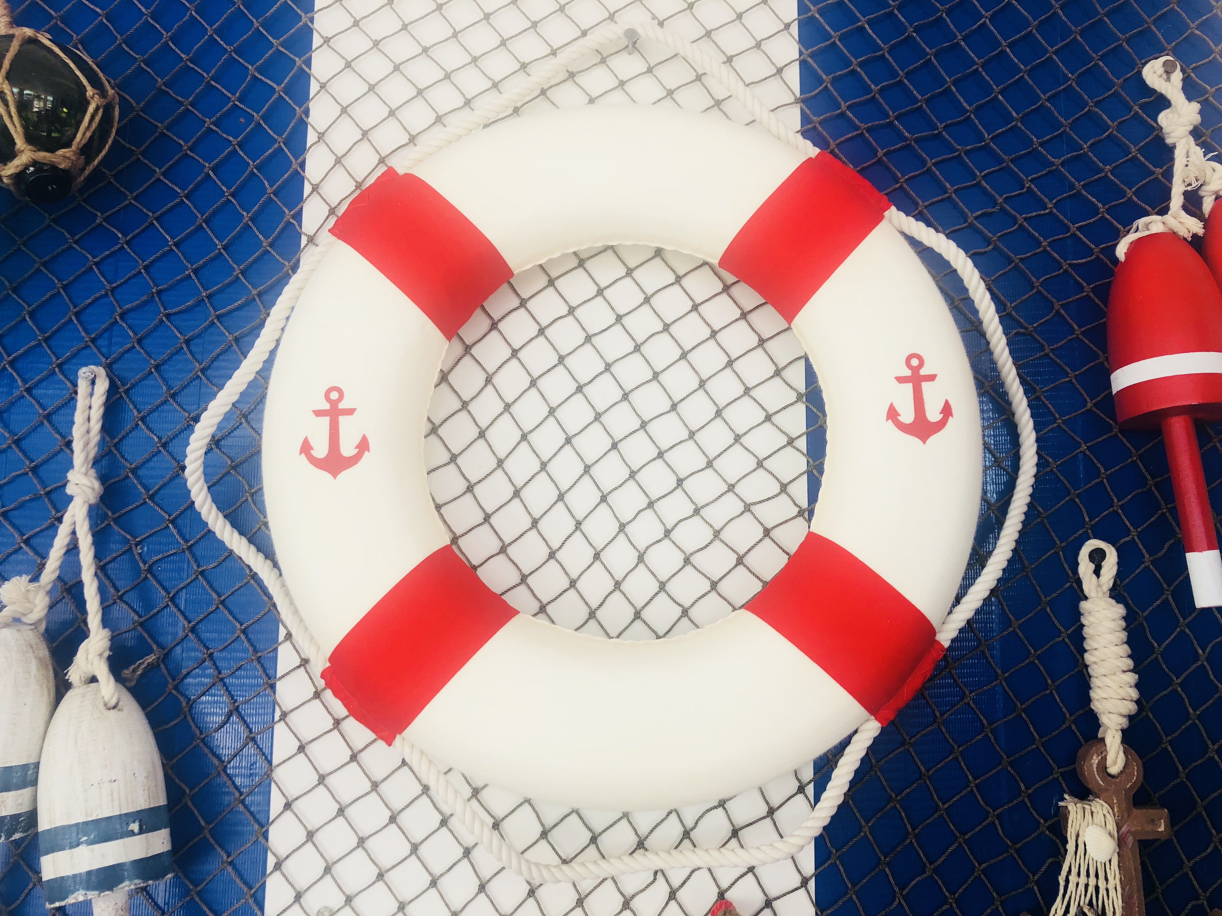 Classic White Decorative Anchor Lifering with Red Bands 15""