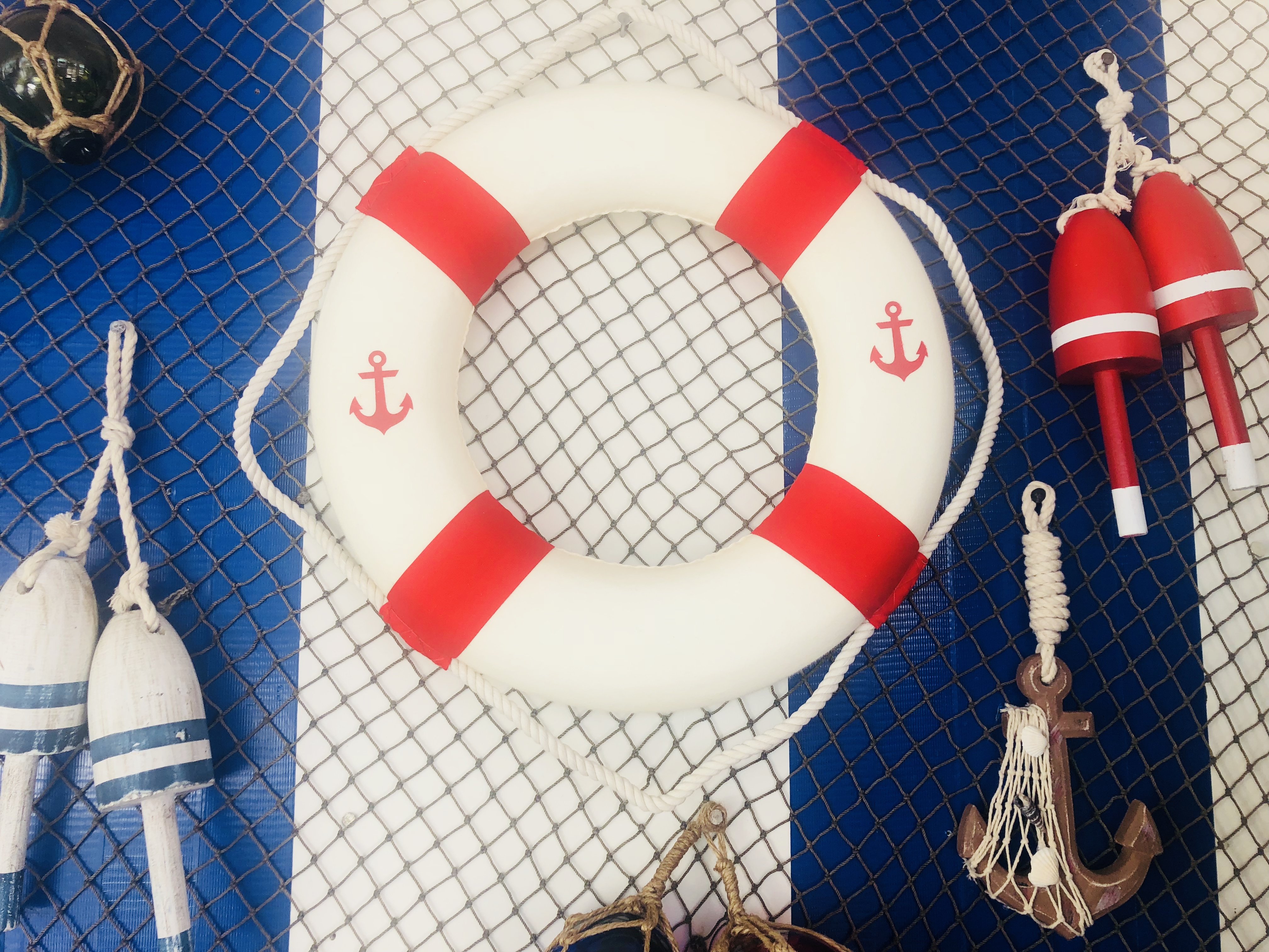 The Classic White Decorative Anchor Lifering with Red Bands 15" is the perfect nautical accent to add to your home, office, or pool area. Red canvas straps are featured to accent the white lifering displaying red anchors. Lightweight styrofoam construction makes the large 20" lifering easy to hang anywhere so you can bring that nautical ocean feel into the comfort of your own home, office, nautical clubhouse, or poolhouse.