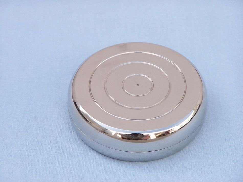 The Hampton Nautical Chrome Scout's Compass with Rosewood Box 3" is a great companion for the true navigator. Polished to a mirror-like shine, this compass features a brass trim with a smaller face.