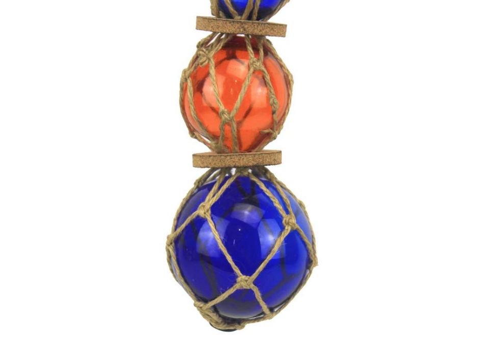 Blue - Orange - Blue Japanese Glass Ball Fishing Floats with Brown Netting Decoration 11"" Blue - Orange - Blue Japanese Glass Ball Fishing Floats with Brown Netting Decoration 11"" Blue - Orange - Blue Japanese Glass Ball Fishing Floats with Brown Netting Decoration 11""