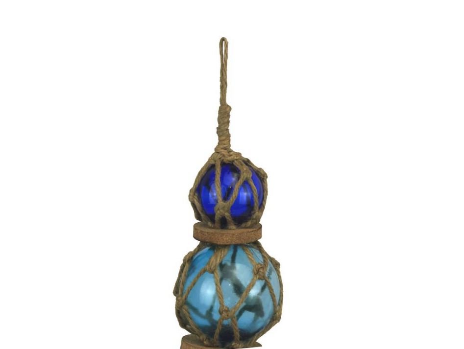 Blue - Light Blue - Blue Japanese Glass Ball Fishing Floats with Brown Netting Decoration 11"" Blue - Light Blue - Blue Japanese Glass Ball Fishing Floats with Brown Netting Decoration 11"" Blue - Light Blue - Blue Japanese Glass Ball Fishing Floats with Brown Netting Decoration 11""