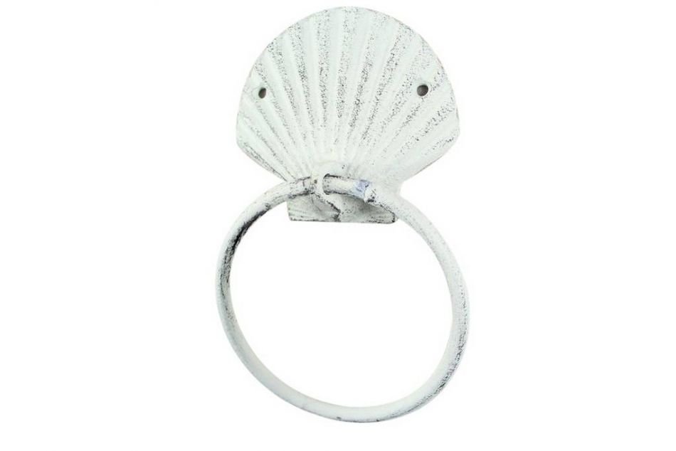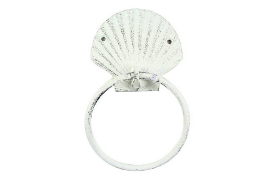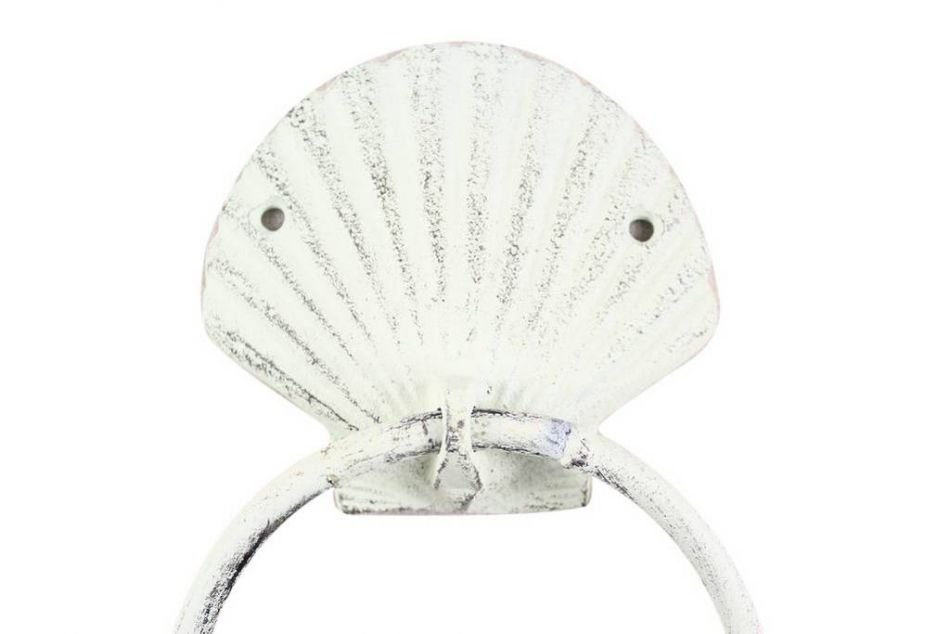 Home > Rustic Whitewashed Cast Iron Seashell Towel Holder 8.5""
