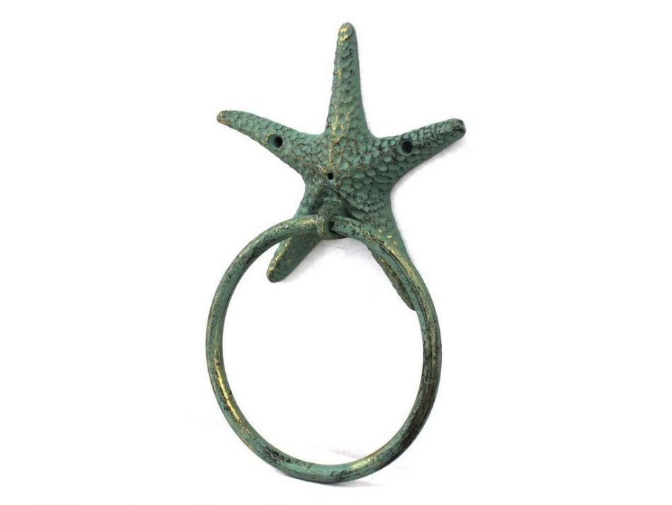 This Antique Bronze Cast Iron Starfish Towel Holder 8.5" is perfect for any nautical inspired kitchen. It adds charm to any nautical room, while impressing your guests with their substance and thoughtfulness. Ideal for hanging paper towels, this durable towel holder 8.5" is crafted from cast iron. Easily mountable, display this decorative holder to show those who visit your home the affinity for the sea-faring lifestyle.