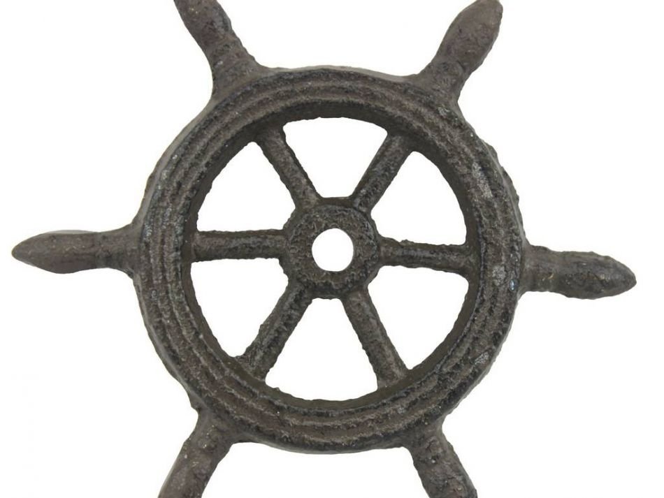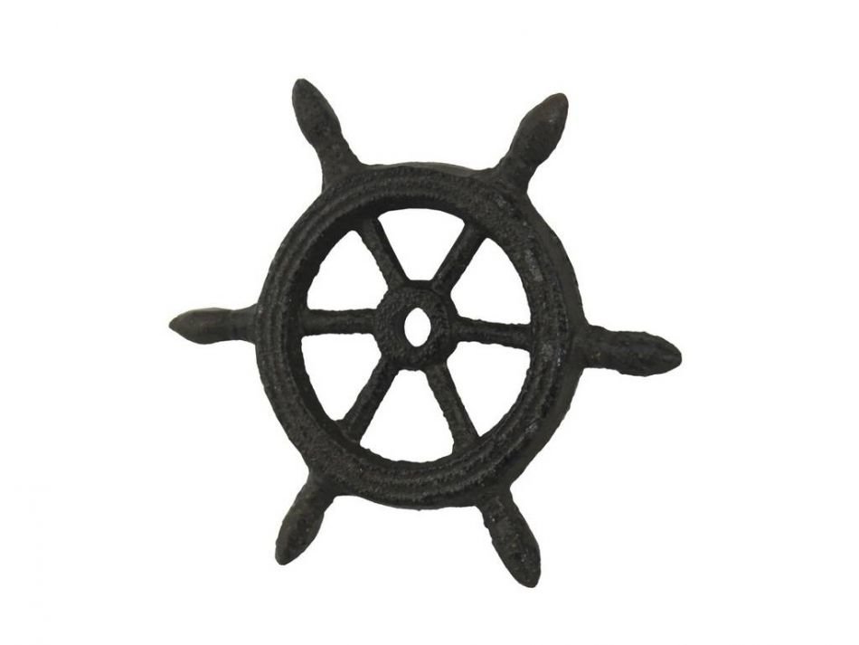 Handcrafted from gleaming Cast Iron, this fabulous Ship Wheel Paperweight 4" is the perfect addition to any desk - whether at home or in the office. As a talisman to sailors present and past  the ship's wheel was a sign of good fortune. Stylishly recreated here, make use of this beautiful weight and make a true nautical statement.
