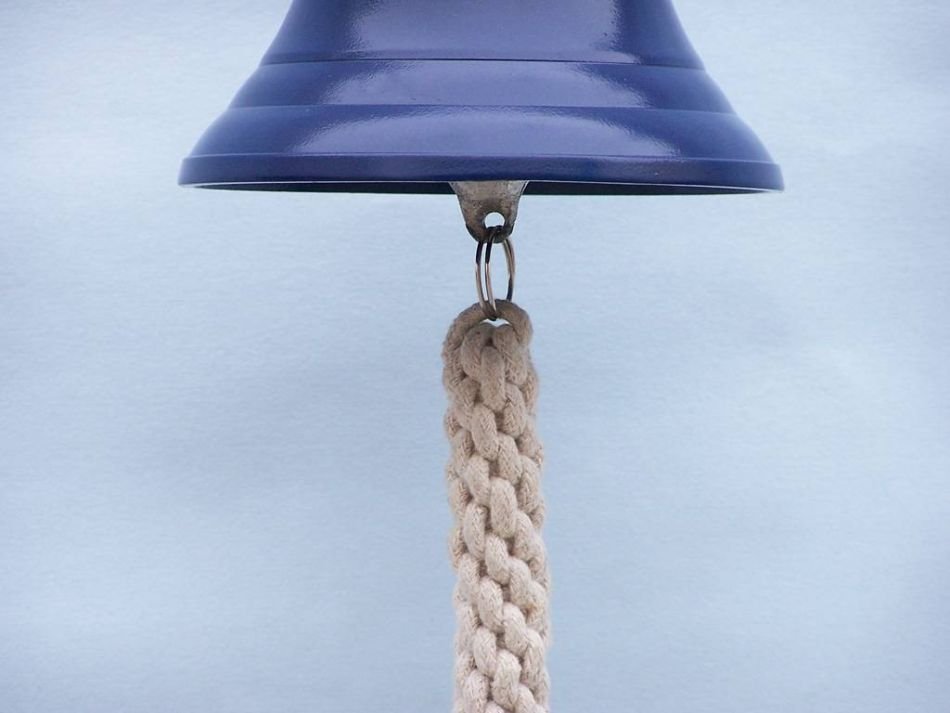 Solid Brass Hanging Ships Bell 11"" - Blue Solid Brass Hanging Ships Bell 11"" - Blue Solid Brass Hanging Ships Bell 11"" - Blue