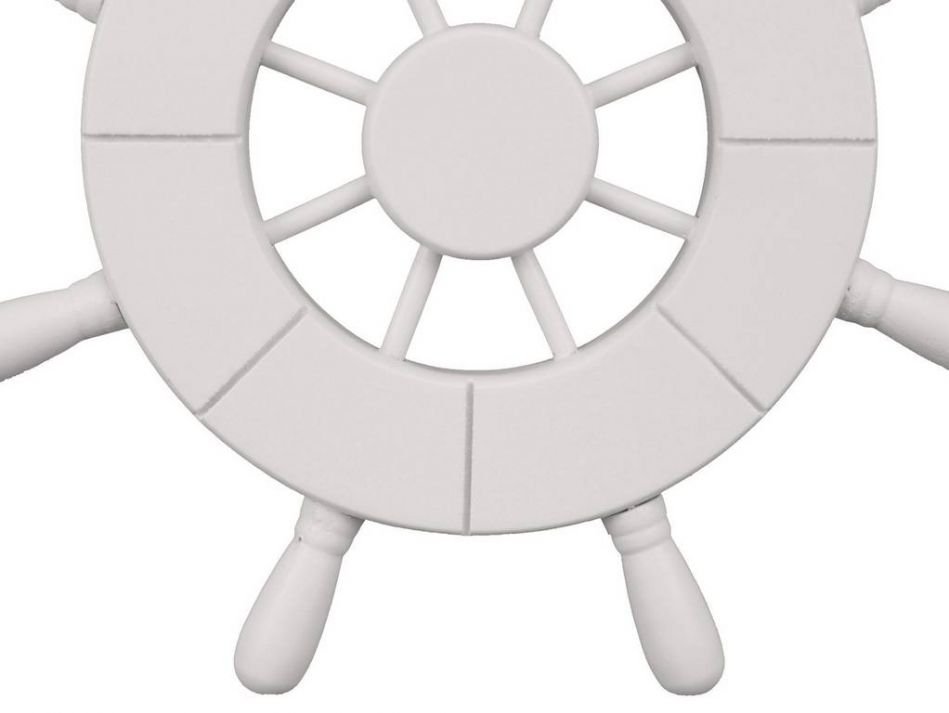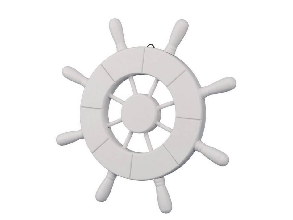 This White Wooden Decorative Ship Wheel 9" combines a finish with quality craftsmanship to make this the perfect nautical wall hanging to accent your home. Ideal for those who love colorful nautical wall art, this beach decor will leave your guests in awe. This steering wheel has six spokes surrounding it and is easily mountable to a wall if in need of a beach decoration.