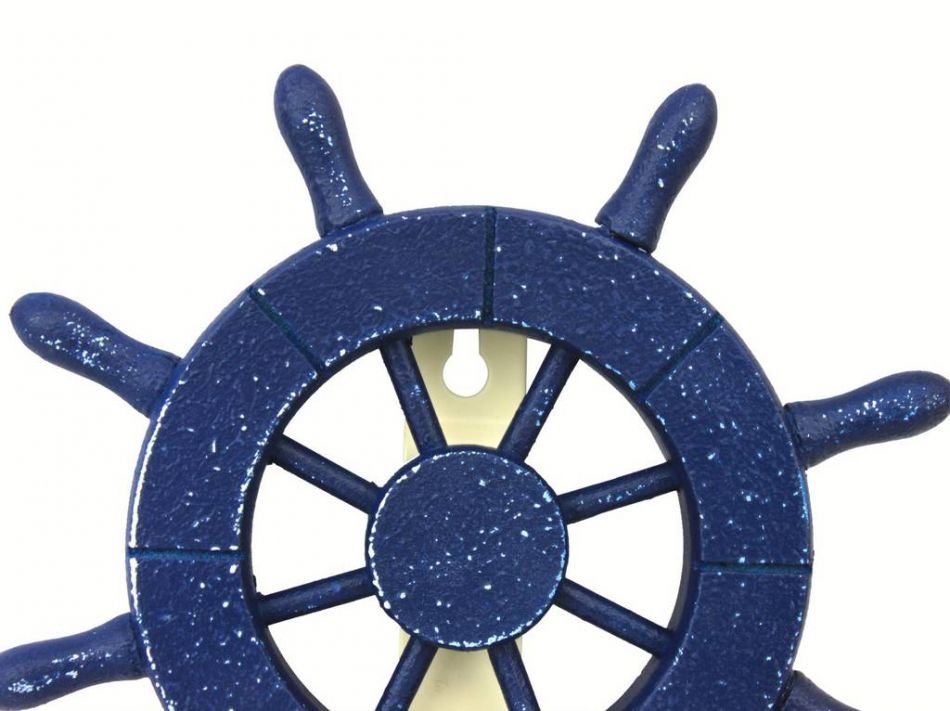 This Rustic All Dark Blue Decorative Ship Wheel with Hook 8" is unique with a sleek stylish quality finish to make this the perfect nautical ships wheel to accent any room in your home.  It will make an excellent addition to any nautical themed room.  This charming boats steering wheel has eight spokes and is easily mountable to a wall.
