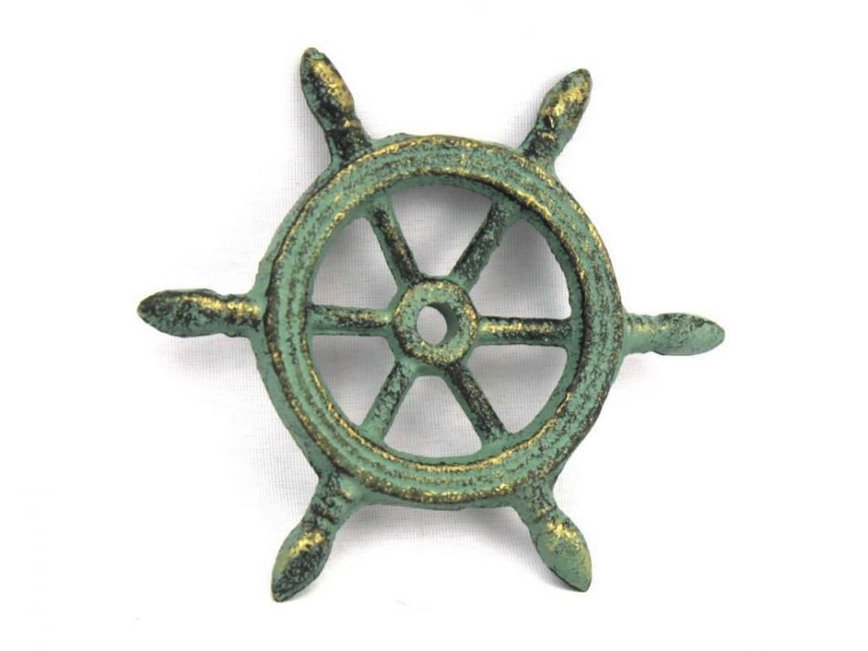 Handcrafted from gleaming Antique Bronze Cast Iron, this fabulous Ship Wheel Paperweight 4" is the perfect addition to any desk - whether at home or in the office. As a talisman to sailors present and past  the ship's wheel was a sign of good fortune. Stylishly recreated here, make use of this beautiful weight and make a true nautical statement.
