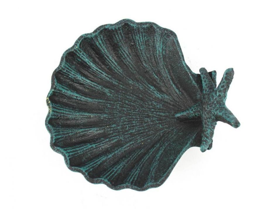 Seaworn Blue Cast Iron Shell With Starfish Decorative Bowl 6"" Seaworn Blue Cast Iron Shell With Starfish Decorative Bowl 6"" Seaworn Blue Cast Iron Shell With Starfish Decorative Bowl 6""