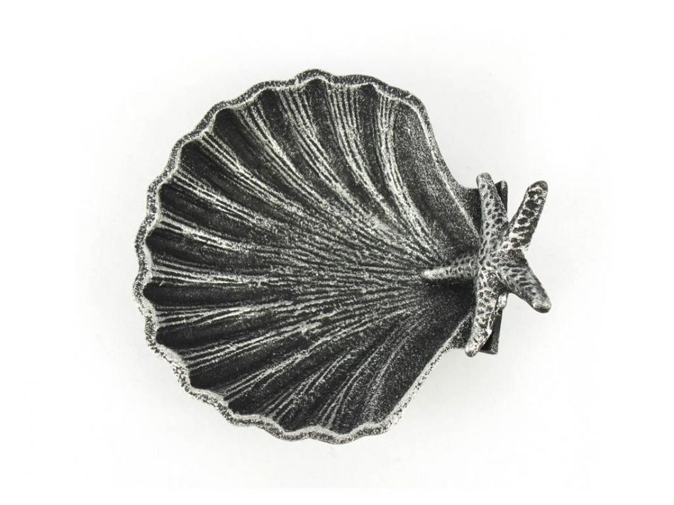 Home > Antique Silver Cast Iron Shell With Starfish Decorative Bowl 6""