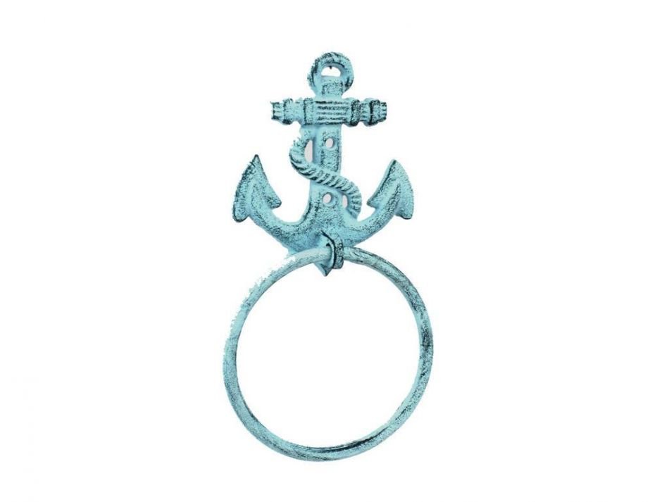 This Dark Blue Whitewashed Cast Iron Anchor Towel Holder 8.5" is perfect for any nautical inspired bathroom or kitchen. It adds charm to any nautical room, while impressing your guests with their substance and thoughtfulness. Ideal for hanging towels, this durable towel holder 8.5" is crafted from cast iron.Easily mountable, display this decorative holder to show those who visit your home the affinity for the sea-faring lifestyle.