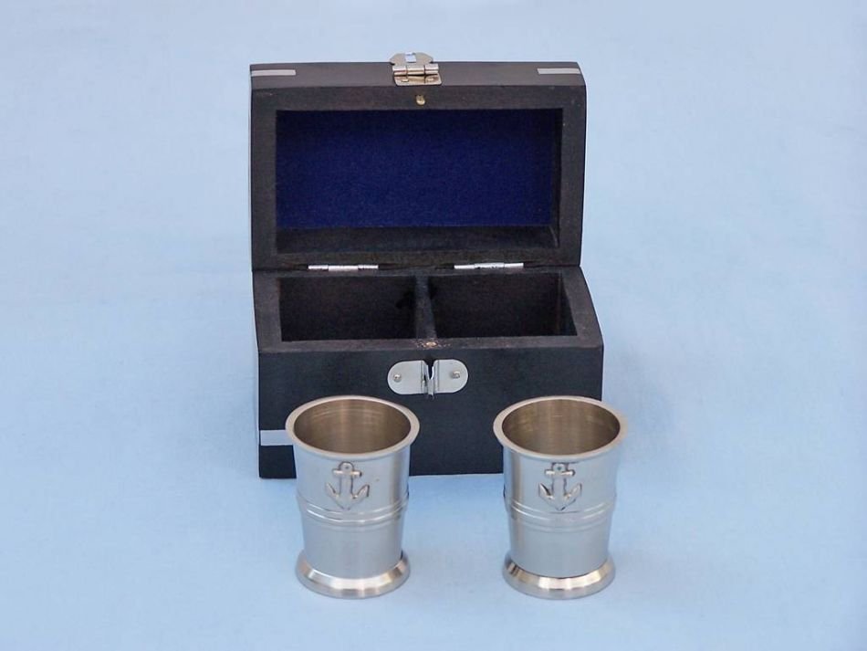 Home > Brushed Nickel Anchor Shot Glasses With Rosewood Box 4"" - Set of 2
