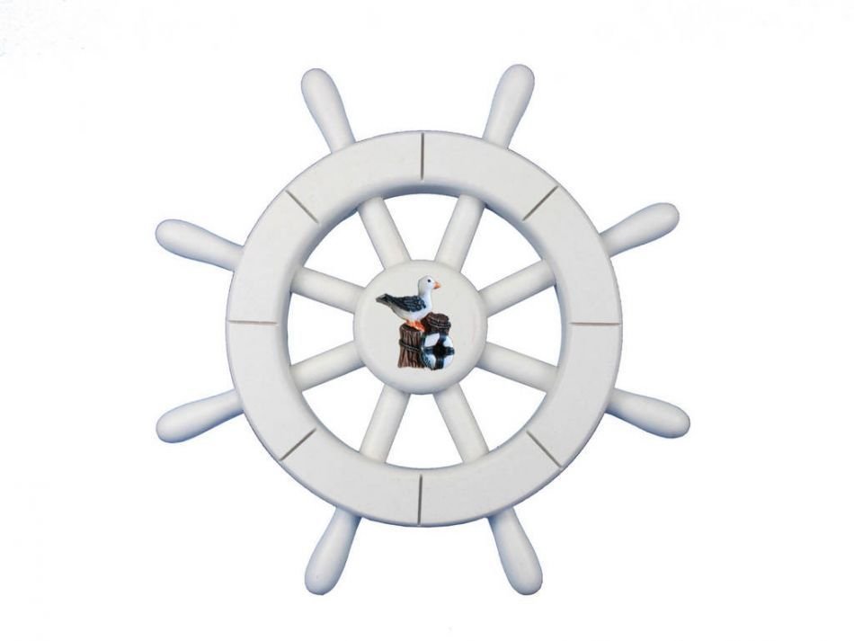 White Decorative Ship Wheel With Seagull 12"" White Decorative Ship Wheel With Seagull 12"" White Decorative Ship Wheel With Seagull 12""