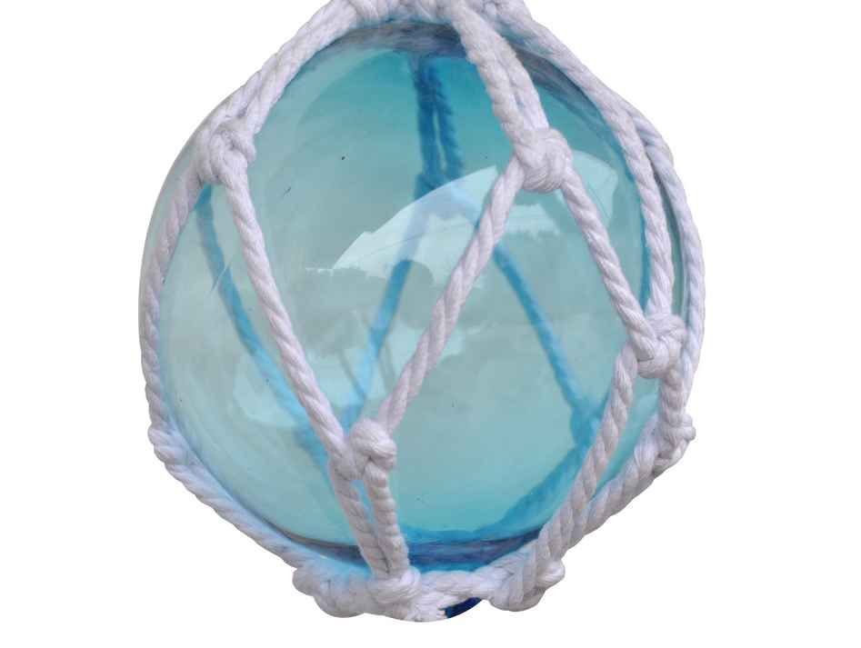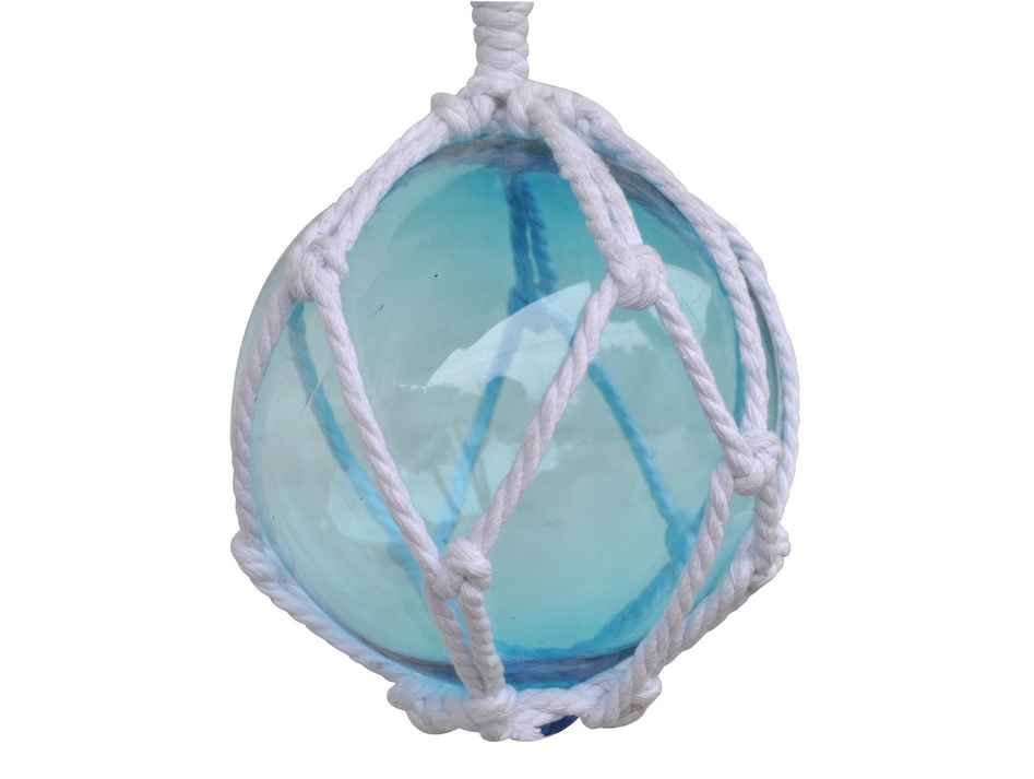 Light Blue Japanese Glass Ball Fishing Float With White Netting Decoration 6"" Light Blue Japanese Glass Ball Fishing Float With White Netting Decoration 6"" Light Blue Japanese Glass Ball Fishing Float With White Netting Decoration 6""