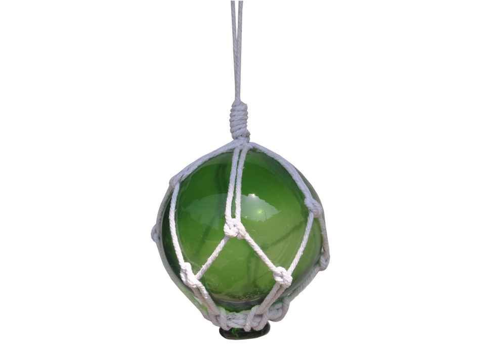 Green Japanese Glass Ball Fishing Float With White Netting Decoration 3"" Green Japanese Glass Ball Fishing Float With White Netting Decoration 3"" Green Japanese Glass Ball Fishing Float With White Netting Decoration 3""