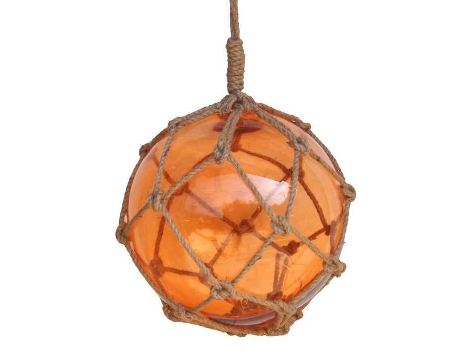 Orange Japanese Glass Ball Fishing Float With Brown Netting Decoration 12"" Orange Japanese Glass Ball Fishing Float With Brown Netting Decoration 12"" Orange Japanese Glass Ball Fishing Float With Brown Netting Decoration 12""