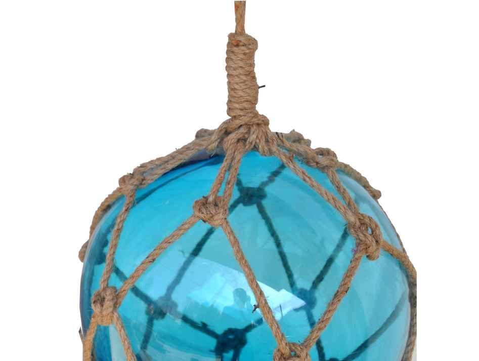 Light Blue Japanese Glass Ball Fishing Float With Brown Netting Decoration 12"" Light Blue Japanese Glass Ball Fishing Float With Brown Netting Decoration 12"" Light Blue Japanese Glass Ball Fishing Float With Brown Netting Decoration 12""
