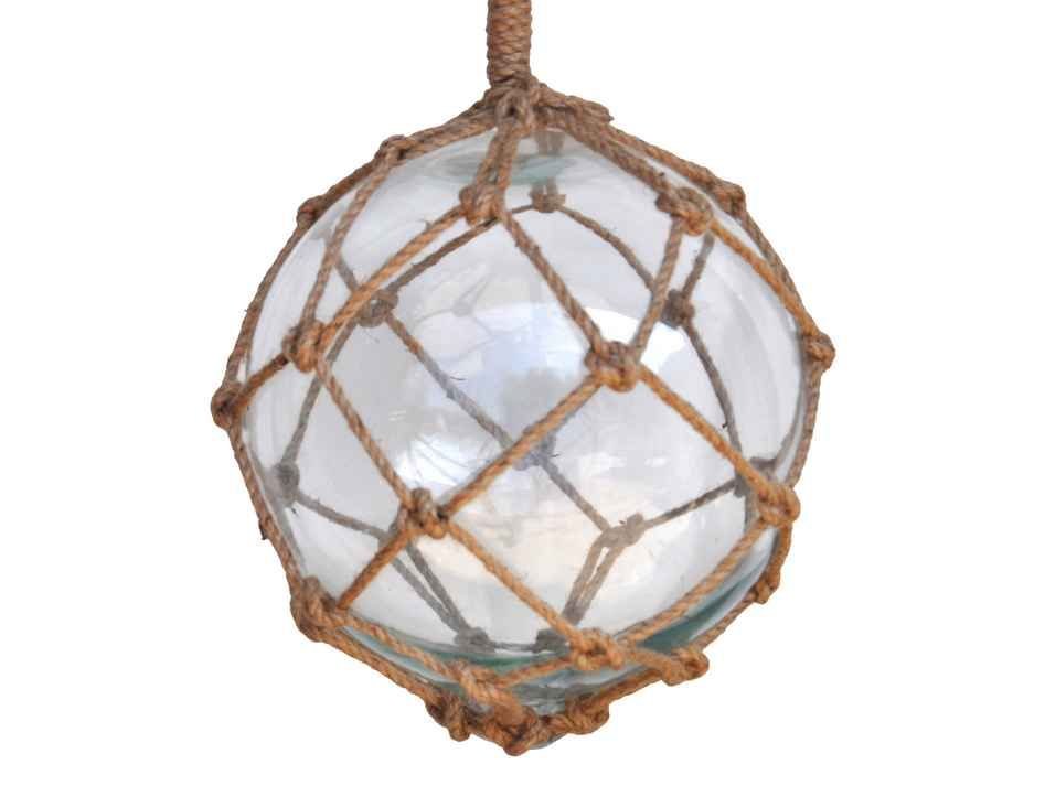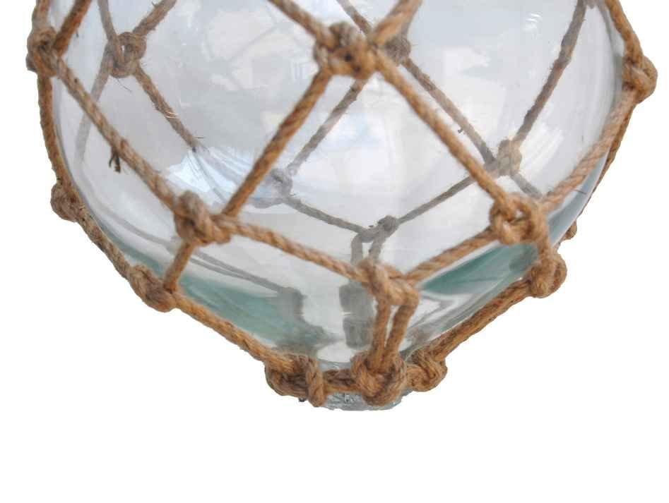 Clear Japanese Glass Ball Fishing Float With Brown Netting Decoration 12"" Clear Japanese Glass Ball Fishing Float With Brown Netting Decoration 12"" Clear Japanese Glass Ball Fishing Float With Brown Netting Decoration 12""