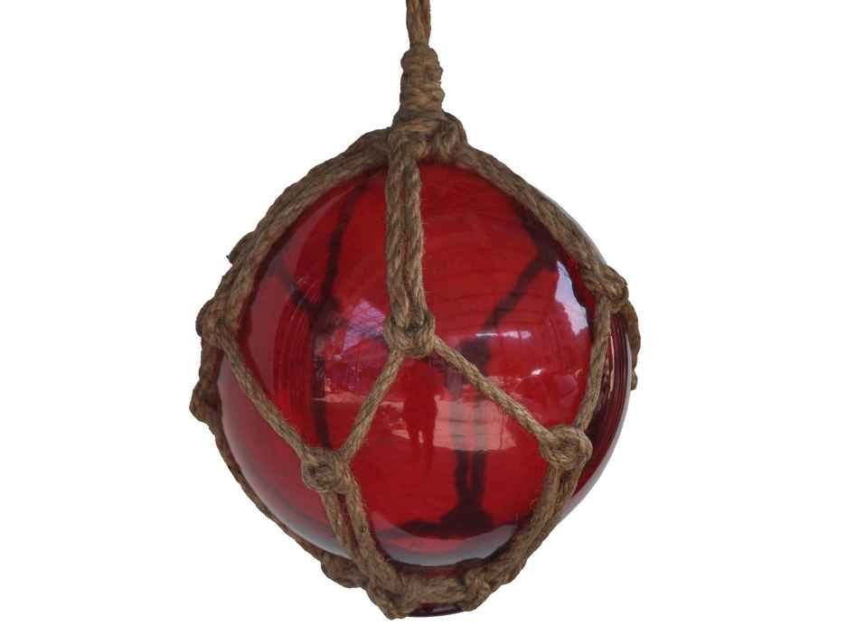 Red Japanese Glass Ball Fishing Float With Brown Netting Decoration 6"" Red Japanese Glass Ball Fishing Float With Brown Netting Decoration 6"" Red Japanese Glass Ball Fishing Float With Brown Netting Decoration 6""
