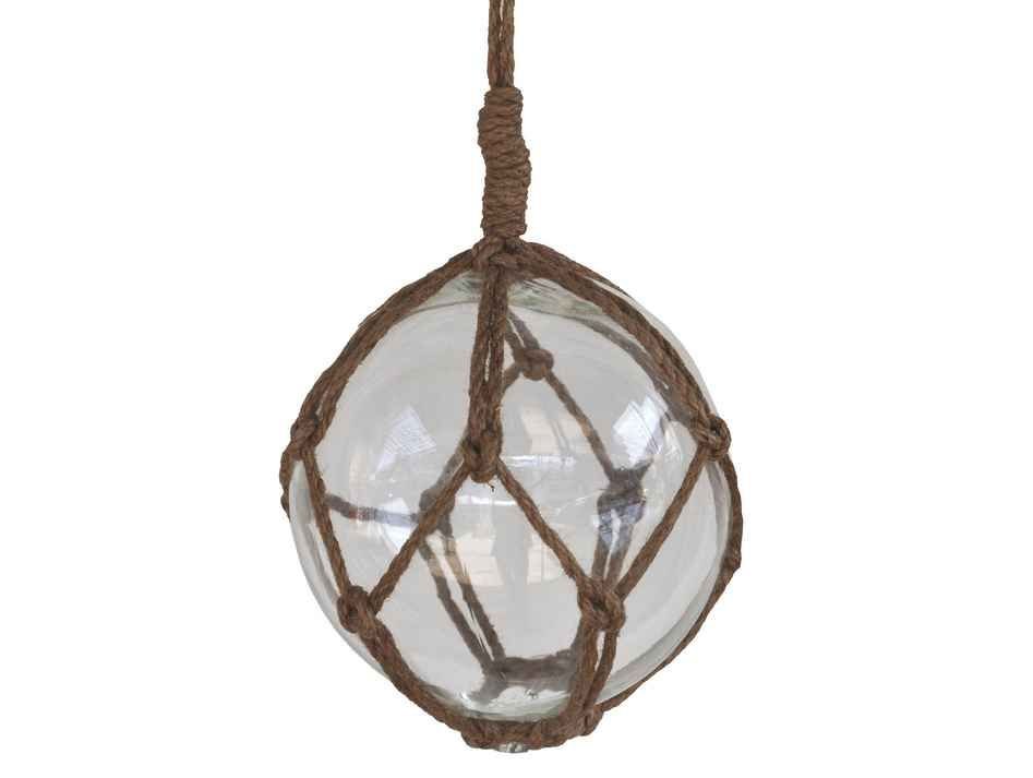 Clear Japanese Glass Ball Fishing Float With Brown Netting Decoration 6"" Clear Japanese Glass Ball Fishing Float With Brown Netting Decoration 6"" Clear Japanese Glass Ball Fishing Float With Brown Netting Decoration 6""