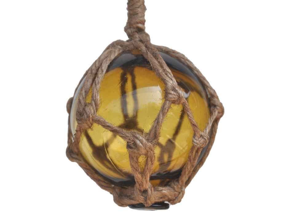 Amber Japanese Glass Ball Fishing Float With Brown Netting Decoration 3"" Amber Japanese Glass Ball Fishing Float With Brown Netting Decoration 3"" Amber Japanese Glass Ball Fishing Float With Brown Netting Decoration 3""
