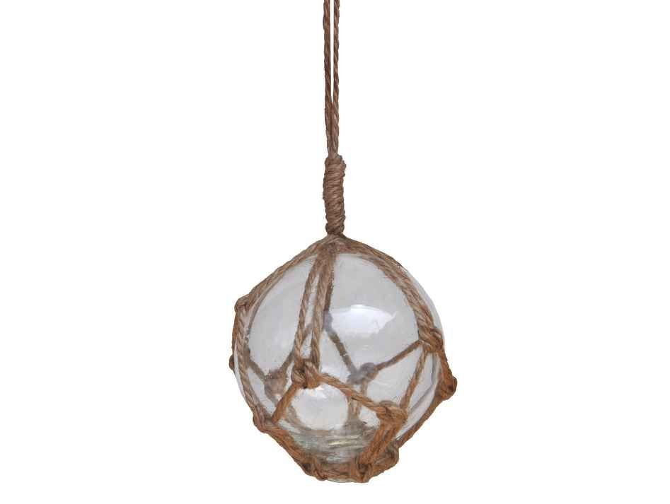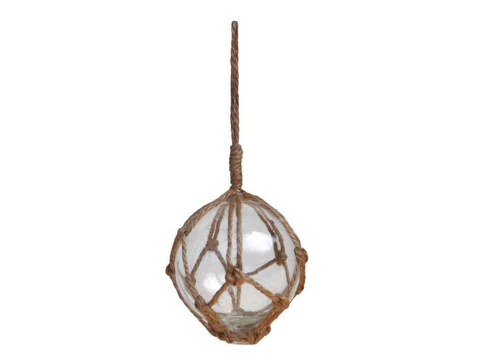 Clear Japanese Glass Ball Fishing Float With Brown Netting Decoration 3"" Clear Japanese Glass Ball Fishing Float With Brown Netting Decoration 3"" Clear Japanese Glass Ball Fishing Float With Brown Netting Decoration 3""