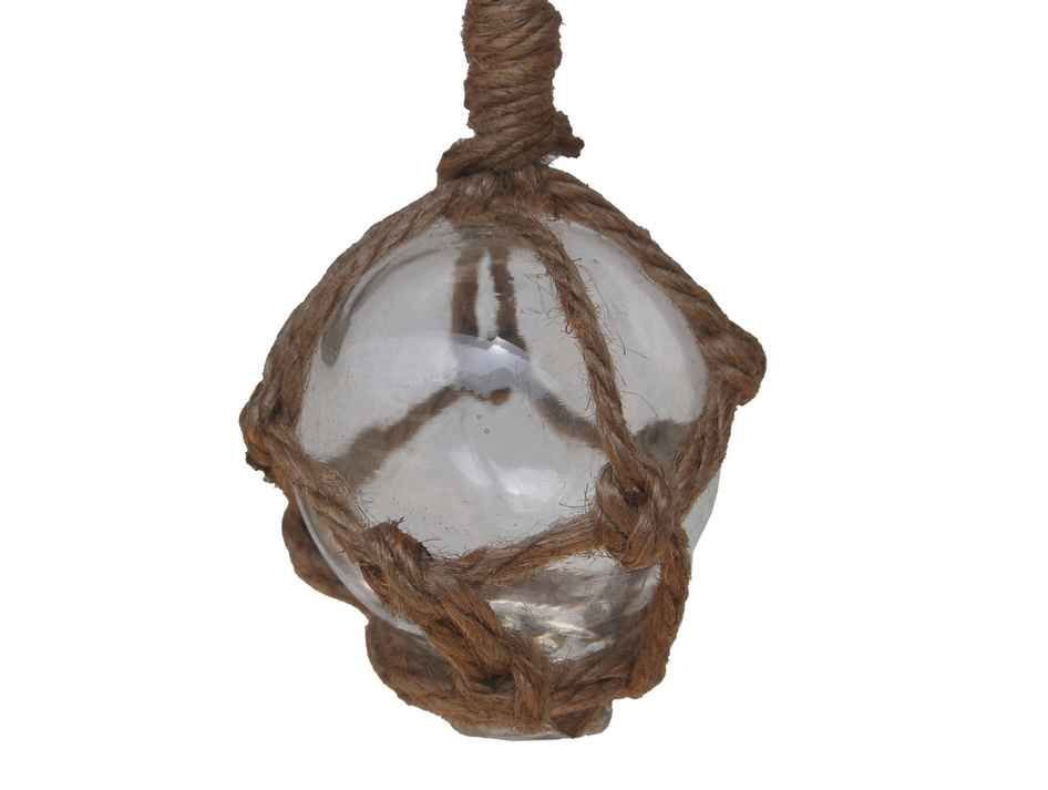 Clear Japanese Glass Ball Fishing Float With Brown Netting Decoration 2"" Clear Japanese Glass Ball Fishing Float With Brown Netting Decoration 2"" Clear Japanese Glass Ball Fishing Float With Brown Netting Decoration 2""