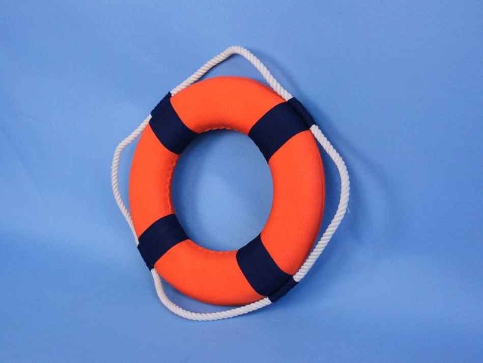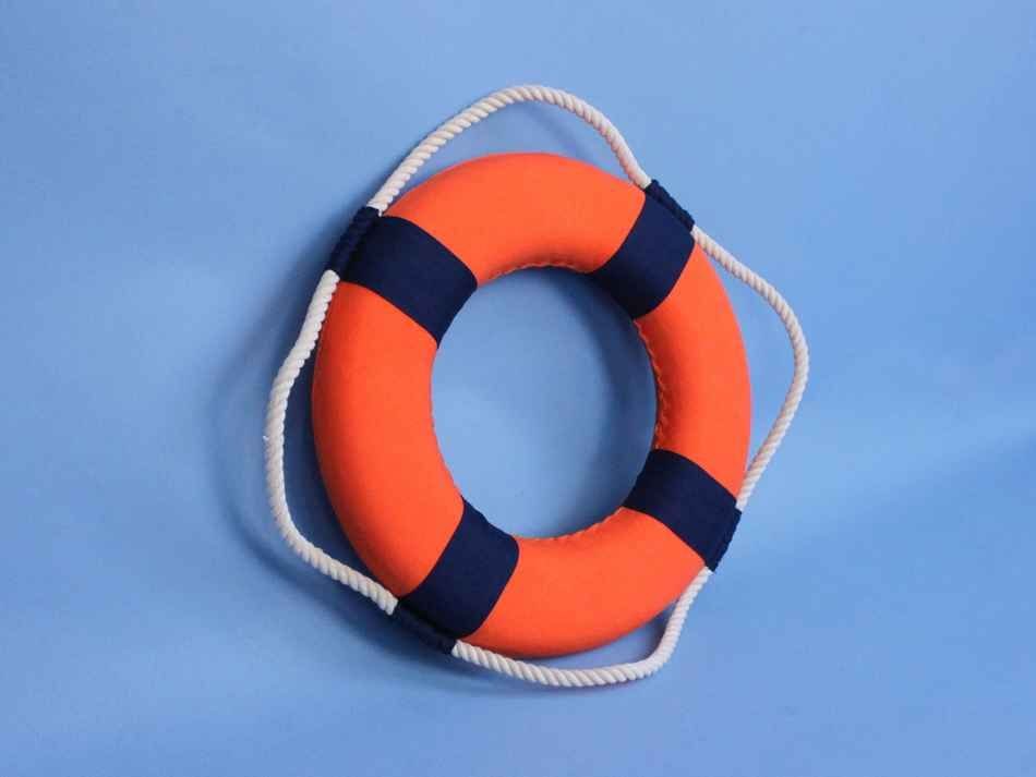 Vibrant Orange Decorative Lifering With Blue Bands 10""