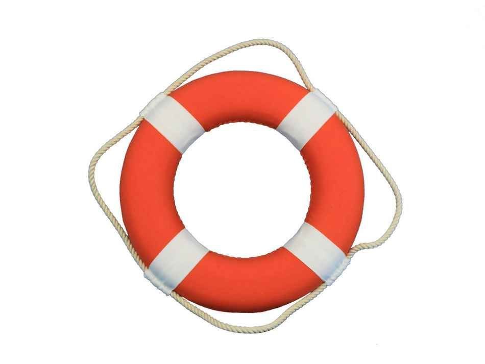 The Vibrant Orange Decorative Lifering with White Bands 15" decorative lifering is a bold beach theme lifering to add to your home, office, or pool area. White canvas straps accent the orange lifering, and will make guests and family feel at home and comfortable. Lightweight styrofoam construction makes the 15" lifering easy to hang anywhere so you can bring that coastal ocean feel into the comfort of your own home, office, nautical clubhouse, or poolhouse.