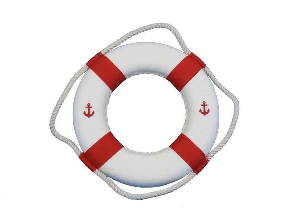 Classic White Decorative Anchor Lifering With Red Bands 10""