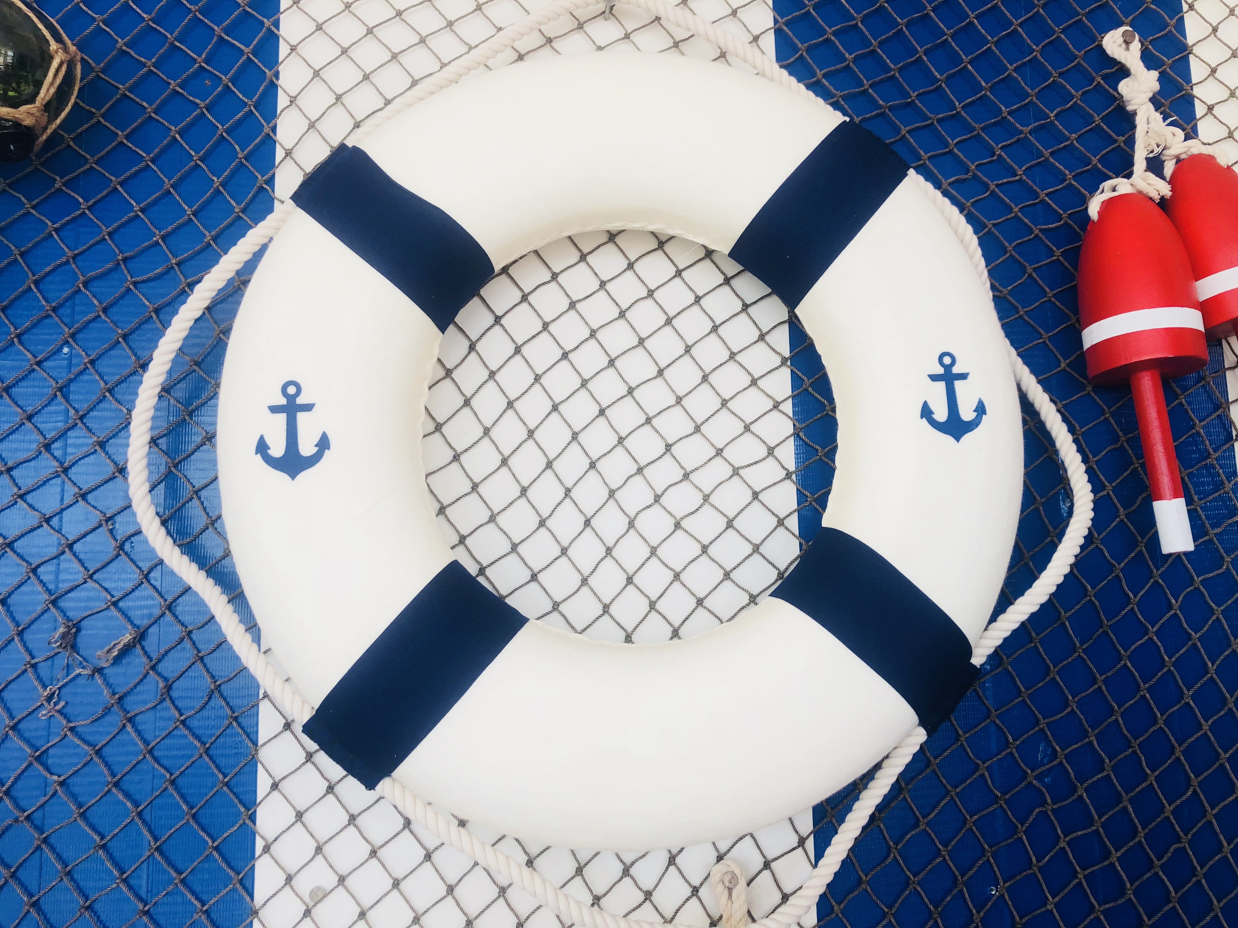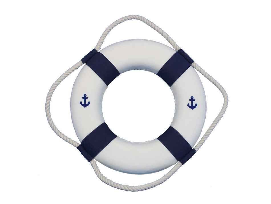 Classic White Decorative Anchor Lifering With Blue Bands 10""