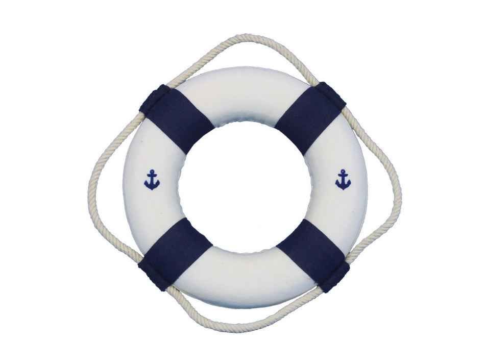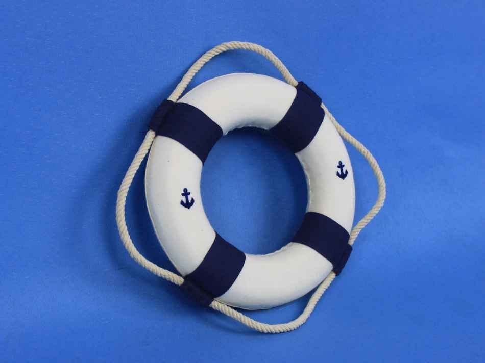 Classic White Decorative Anchor Lifering With Blue Bands 6""