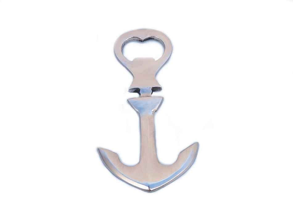 Brushed Nickel Ship Anchor Bottle Opener 5""