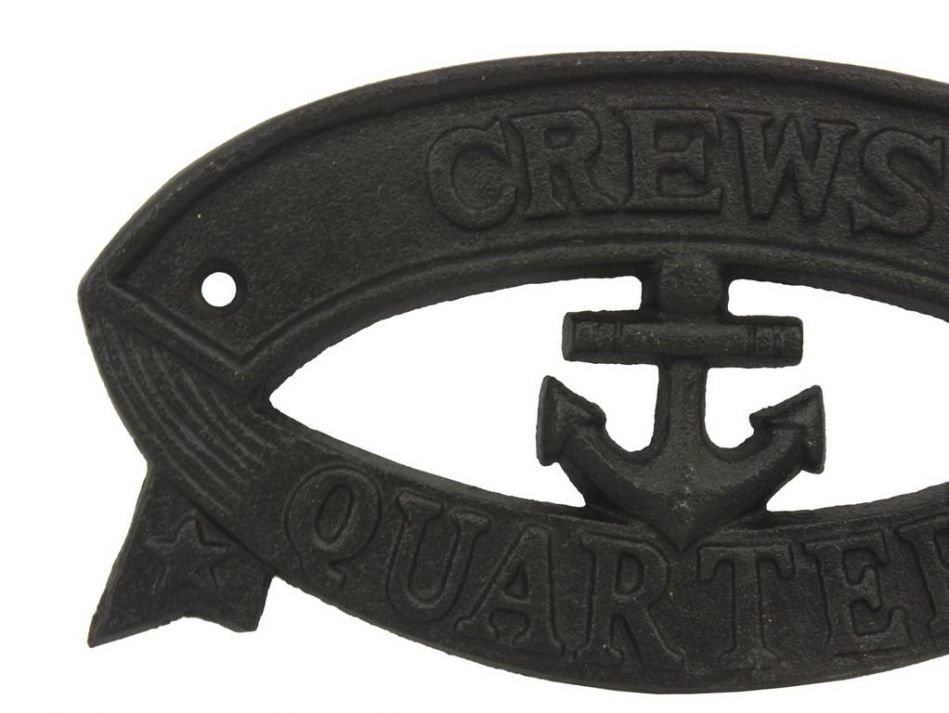 Ideal for posting in a boat, boathouse or any room featuring a nautical décor theme, this brilliant, Rustic Black Cast Iron Crews Quarters Sign 8" clearly gets its point across. With a textured, rustic framing and body, this distinctive sign allows for easy decorative mounting. Display this decorative piece on your boat or in your home and show your affinity for the sea-faring lifestyle to those who visit.
