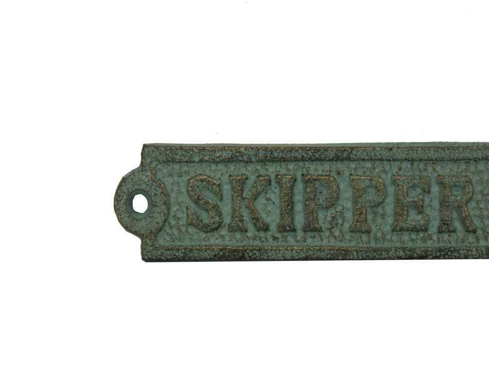 Ideal for posting on a boat, in a boathouse, or any nautical themed room, this brilliant, this Antique Bronze Cast Iron Skipper Sign 6" clearly gets its point across. With a textured, rustic framing and body, this distinctive sign allows for easy decorative mounting. Display this decorative piece on your boat or in your home and show your affinity for the sea-faring lifestyle to those who visit.