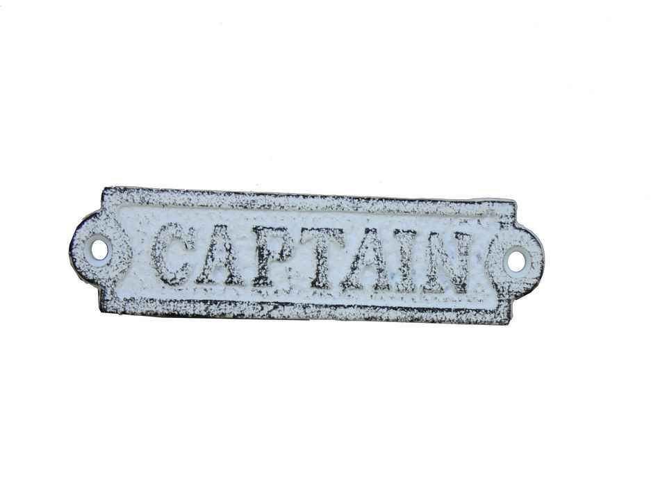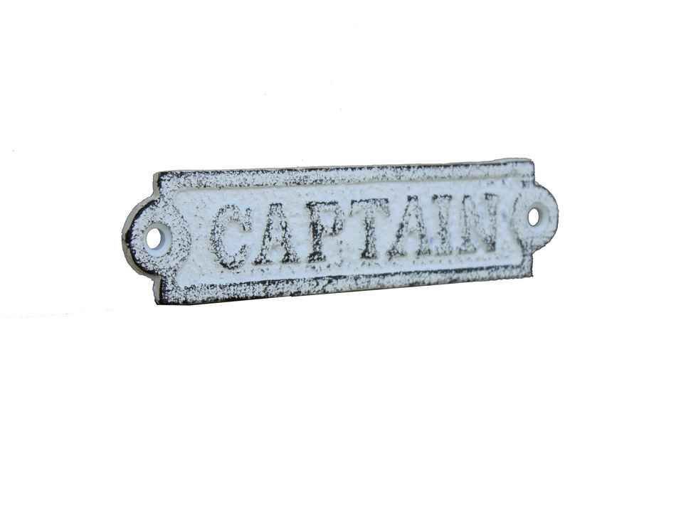Whitewashed Cast Iron Captain Sign 6""