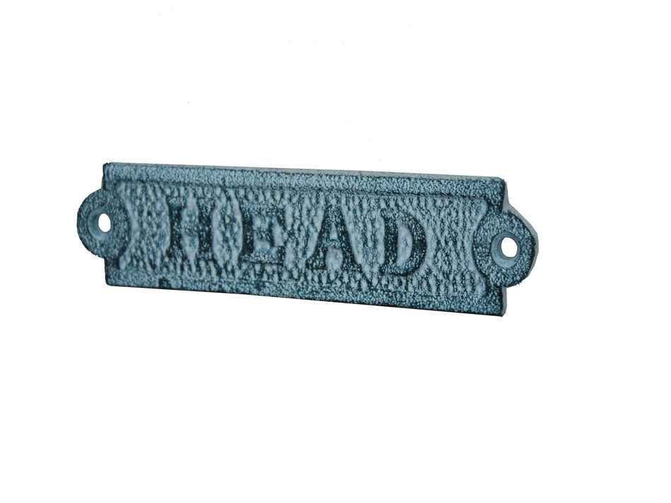 Home > Light Blue Whitewashed Cast Iron Head Sign 6""