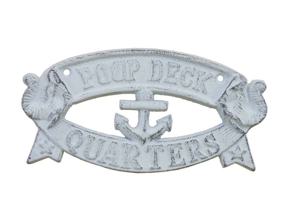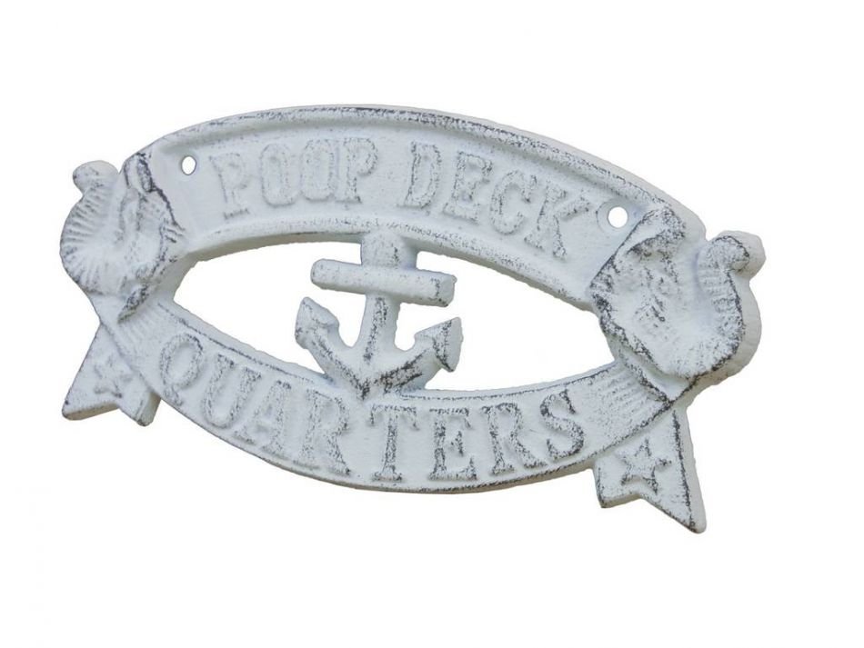 Whitewashed Cast Iron Poop Deck Quarters Sign 8" Whitewashed Cast Iron Poop Deck Quarters Sign 8" Whitewashed Cast Iron Poop Deck Quarters Sign 8"