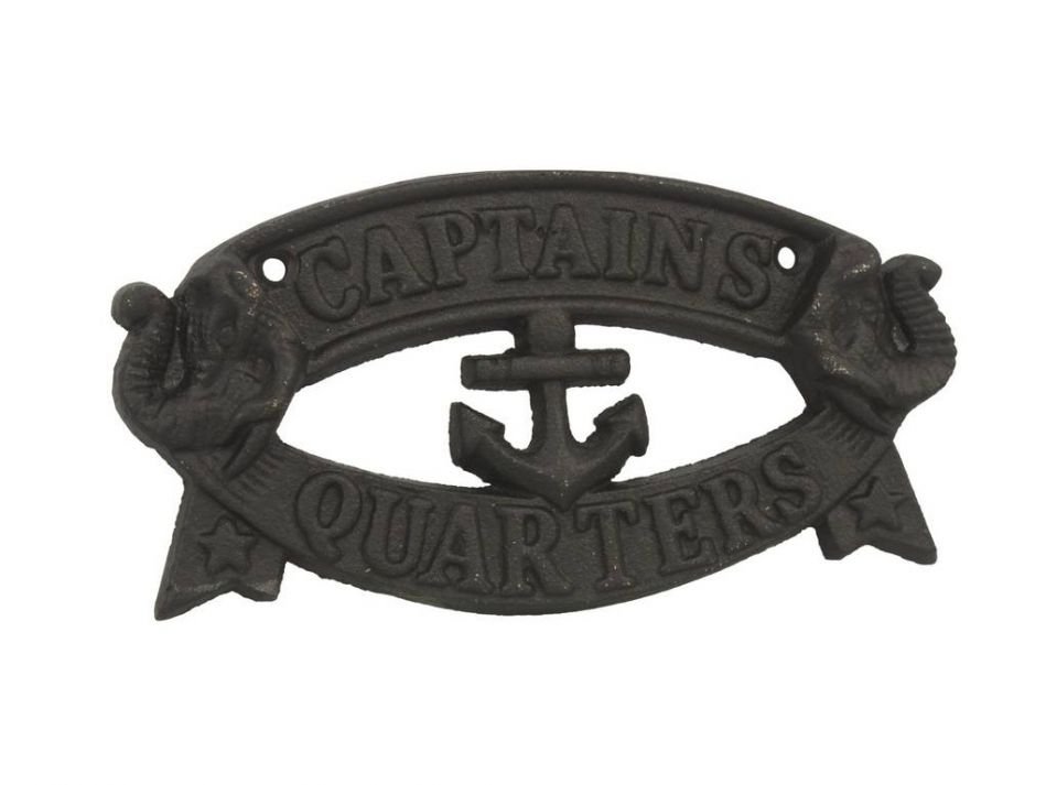 Rustic Black Cast Iron Captains Quarters Sign 8""