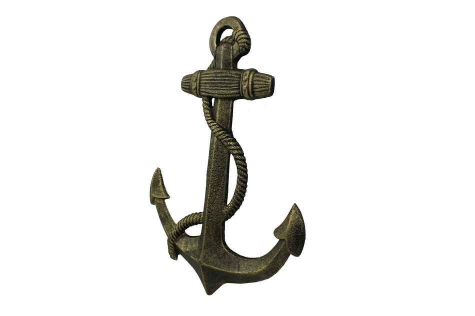 This Antique Gold Cast Iron Anchor 17" is the perfect nautical decor accessory for your living room, office, boat house, restaurant or any other location. This decorative ship anchor is made from high quality cast iron and can be easily hung or leaned against a wall. Be sure to look at our other cast iron finishes such as antique silver, white, and more!