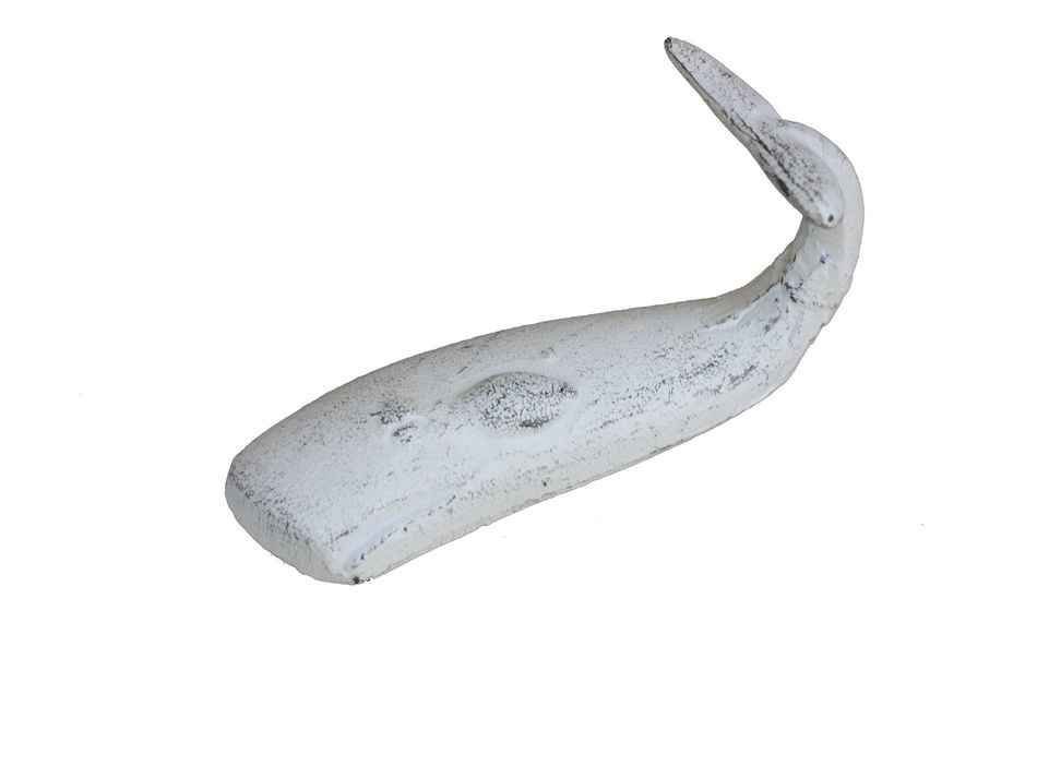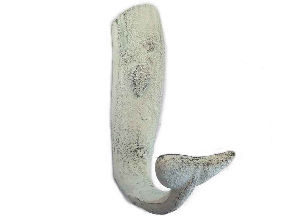 The Whitewashed Cast Iron Whale Hook 6" is the perfect addition for any nautical themed home. Handcrafted from solid cast iron, this whale hook is durable, functional and decorative. Easily mountable, display this decorative key hook to show those who visit your home affinity for the nautical sea-faring lifestyle.