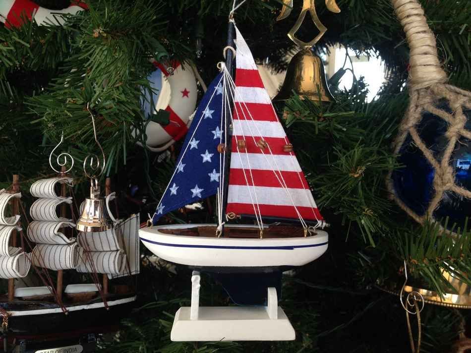 Wooden USA Flag Sailboat Model Christmas Tree Ornament Wooden USA Flag Sailboat Model Christmas Tree Ornament