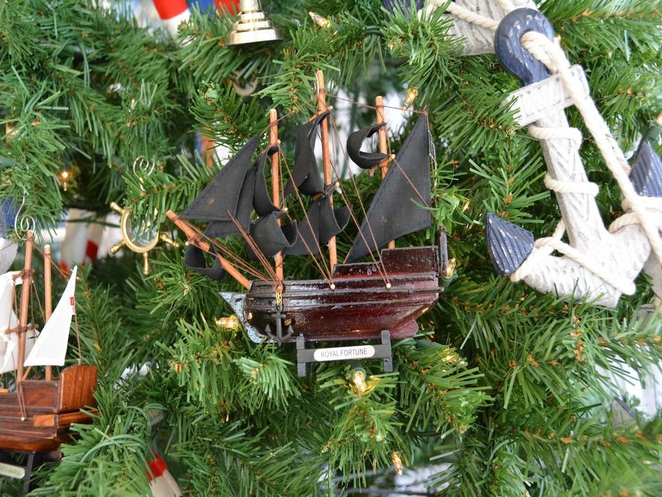 Gather 'round and celebrate the holidays with this Black Bart's Royal Fortune Model Ship Christmas Tree Ornament. Perfectly combining the warmth of the holiday season and the nautical sea-faring lifestyle, this model ship decoration lights up any tree and adds the final nautical touch your Christmas needs. This model ship nautical themed Christmas tree ornament easily hangs and is sure to stand out on this year's Christmas tree.