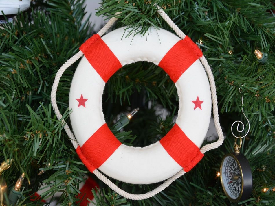 White Lifering with Red Bands Christmas Tree Ornament 6"" White Lifering with Red Bands Christmas Tree Ornament 6"" White Lifering with Red Bands Christmas Tree Ornament 6""
