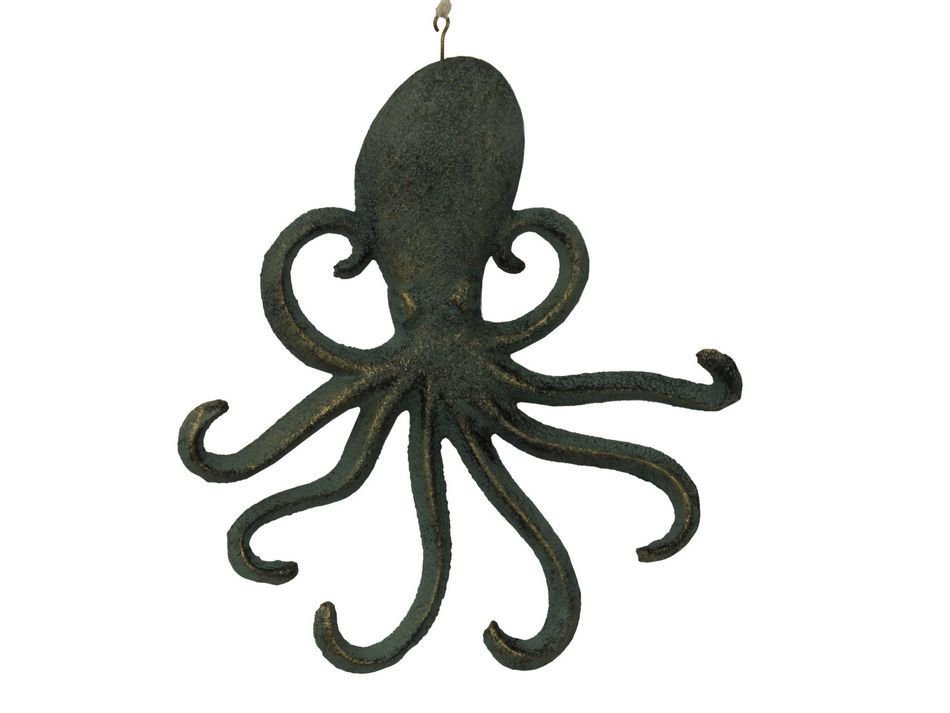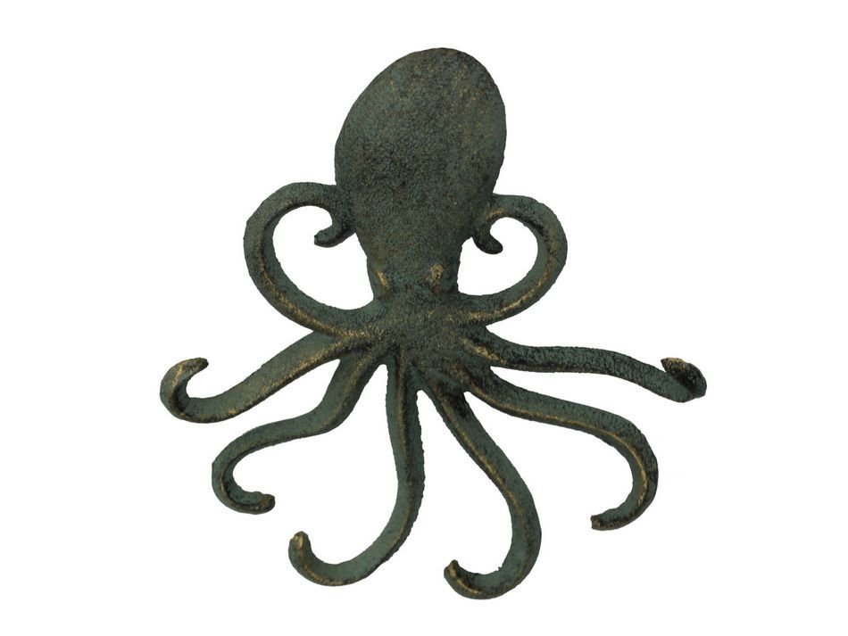 This Antique Seaworn Cast Iron Wall Mounted Octopus Hooks 7" is the perfect addition for any nautical themed home. Handcrafted from cast iron, this rustic bronze octopus with hooks allows for easy decorative mounting, ideal for hanging clothes and accessories. Display this decorative piece to add a nautical theme to any room and show those who visit your home your affinity for the nautical sea-faring lifestyle.
